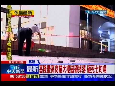 內容轉載自《中時電子報》: 中天新聞》基隆最高的摩天樓「皇冠大樓」昨晚發生奪命意外,一對老夫妻剛在大樓速食店用完餐才走出來,大樓外牆瓷磚突然掉落,砸到妻子頭部,由於傷勢太嚴重,婦人送醫後宣告不治,警方也趕緊封鎖現場,就擔心還有瓷磚剝落,可能又會砸到人。